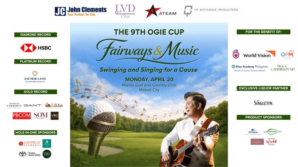 On April 20, 2026, the 9th Ogie Cup united entertainment icons and corporate leaders at Manila Golf & Country Club for a day of celebrity golf for a cause. Organized by Ogie Alcasid in partnership with John Clements Consultants and LVD Management, the tournament raised over ₱15 million along with ...