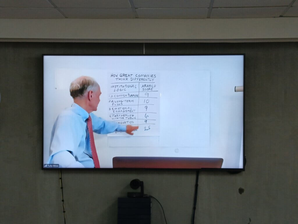 We opened the session with a survey that evaluated whether Aramco could be considered a great company. The class rated it highly in areas such as: