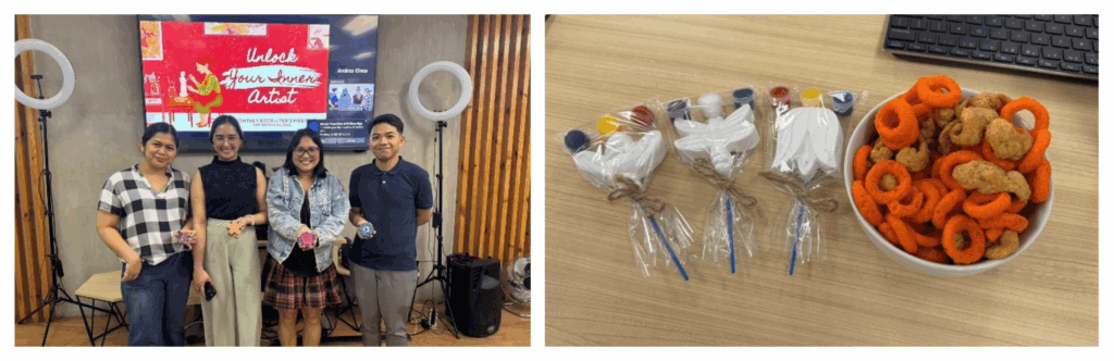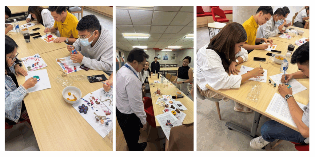 Before we picked up our brushes, we listened to an inspiring talk from our respected Executive Vice President, Ms. Grace Sorongon. She shared thoughtful advice and valuable updates on our recruiters’ performance. Her words reminded us of our responsibilities and encouraged us to embrace growth and continuous improvement. It was the perfect way to transition into the creative part of the session—grounding us with perspective before letting our imaginations flow freely onto the canvas.
