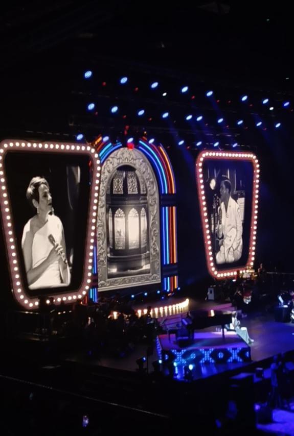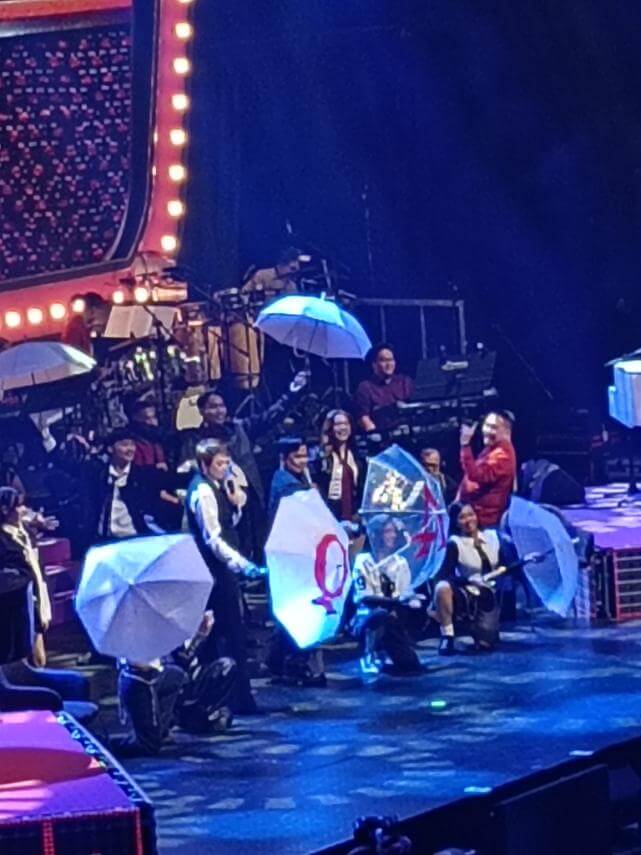 As we entered, I noticed the stage was designed to resemble a jukebox—an aesthetic that perfectly matched the nostalgic theme of the evening. When the countdown ended, a video played showing a rainy exterior of the arena, accompanied by the sound of a man speaking on the radio. Dancers then took the stage, and Ogie and Odette opened the night with “Raining in Manila,” complete with matching umbrellas.